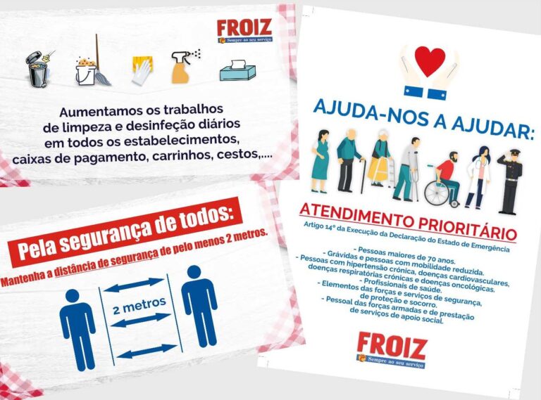Todas as medidas adotadas e aplicadas são comunicadas diariamente a todo o universo de colaboradores do Grupo Froiz, pelos diversos canais de comunicação internos já existentes, assim como são comunicadas aos clientes através do nosso sistema de rádio, posters nas lojas e comunicações nas redes sociais.
