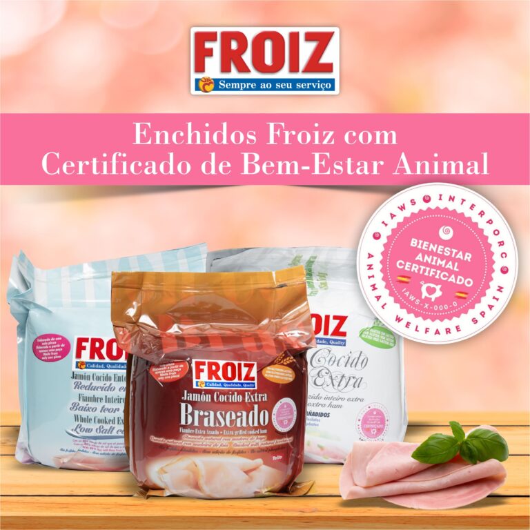 Nos Supermercados Froiz continuamos a trabalhar para oferecer aos nossos clientes produtos de qualidade, garantindo os mais elevados padrões de bem-estar animal e sustentabilidade. Assim, temos para oferecer mais uma gama de produtos da marca Froiz – os fiambres -, que recentemente adquiriram o selo de Bem-Estar Animal (Interporc Animal Wellfare Spain – IAWS), de âmbito internacional. Esta certificação garante que são respeitadas as melhores práticas nesta indústria de produtos cárnicos, ao nível da saúde, biossegurança e tratamento do animal ao longo do seu ciclo de vida través de uma boa alimentação, tratamento, descanso e saúde.