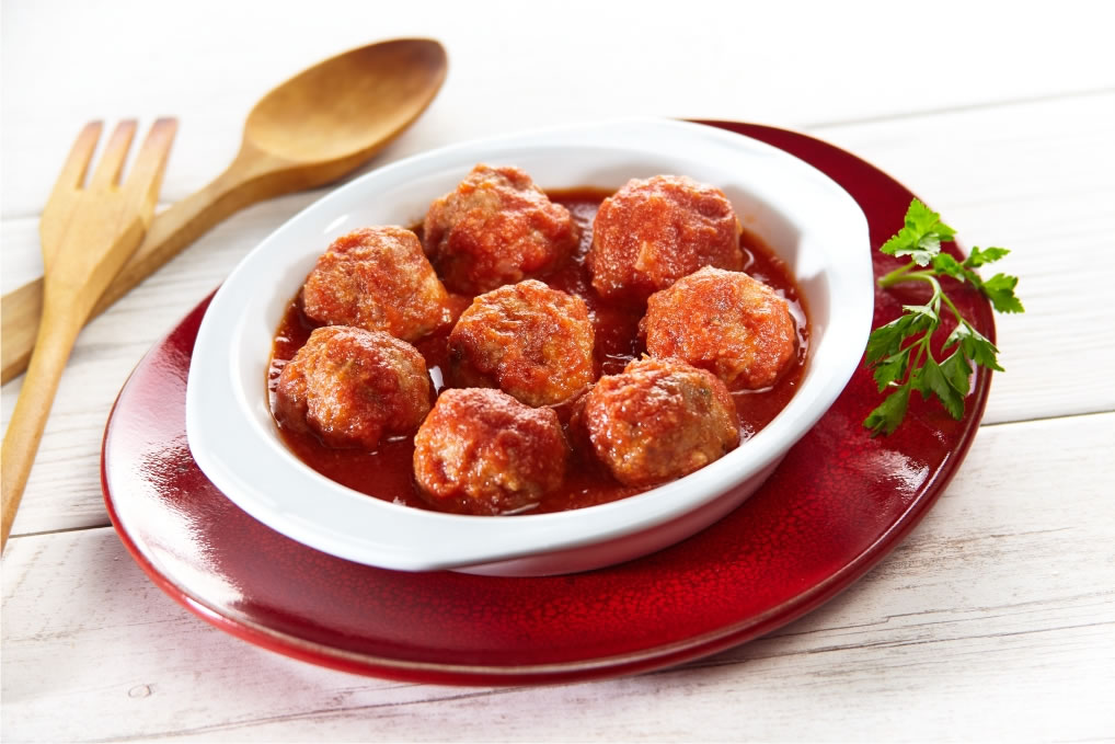 5. Sirva as almôndegas com arroz branco, esparguete cozido ou puré de batata.