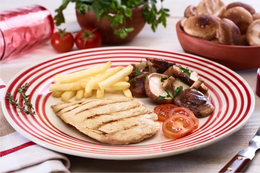 Bifes de peru grelhados com cogumelos