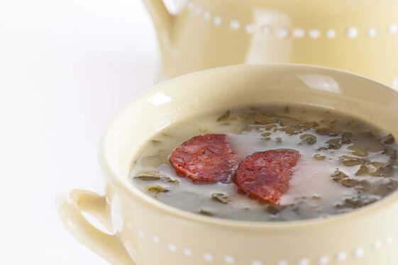 Sirva em pratos individuais e desenhe algumas teias de aranha com a nata líquida. Decore com salsa.