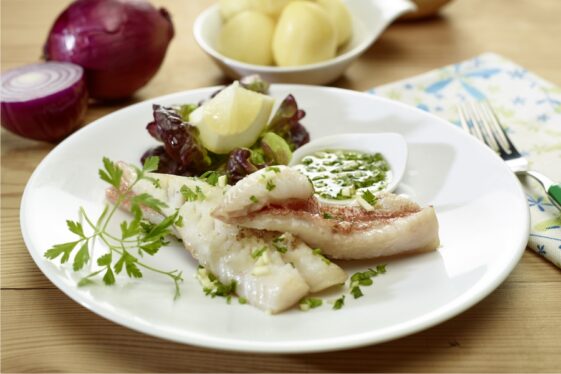 Numa taça, esmague o alho, a salsa e o cebolinho, junte azeite a gosto, sal e os grãos de pimenta rosa. Deixe repousar.