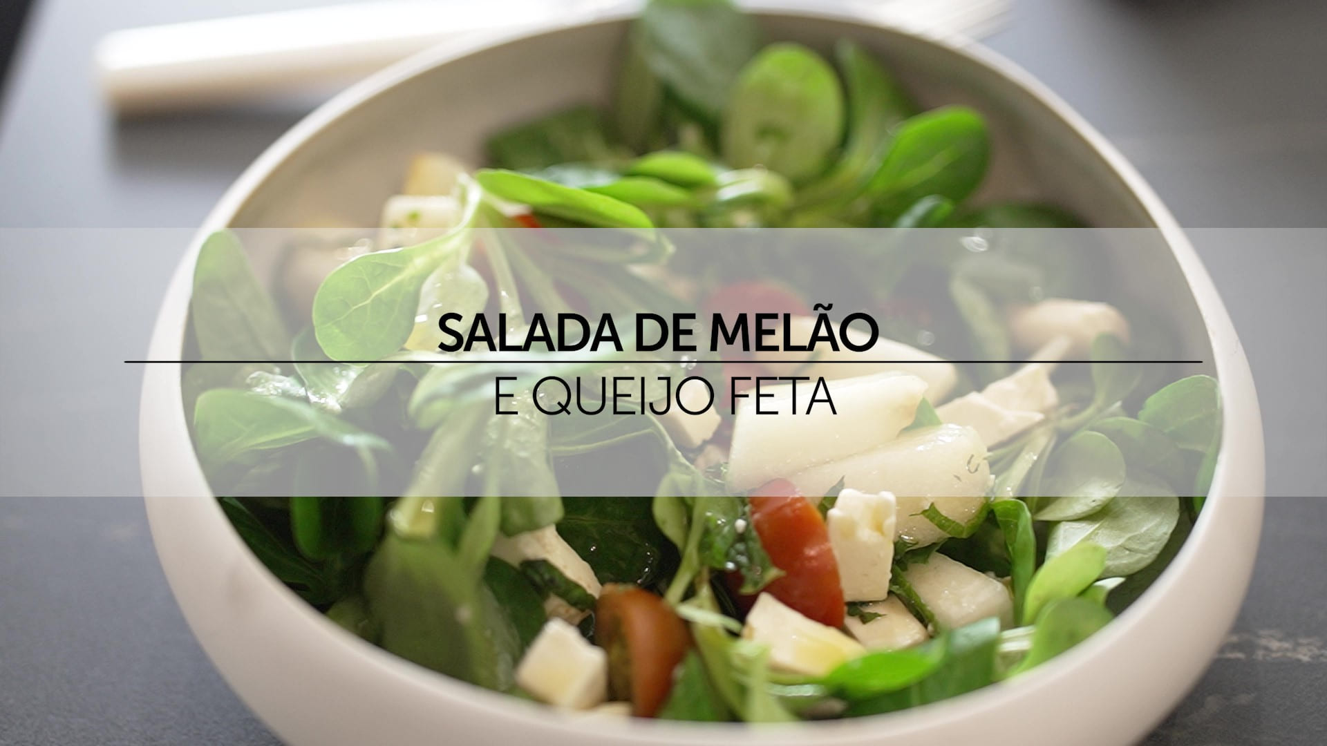 Experimente esta salada de melão com queijo feta, perfeita para uma refeição leve e prática.