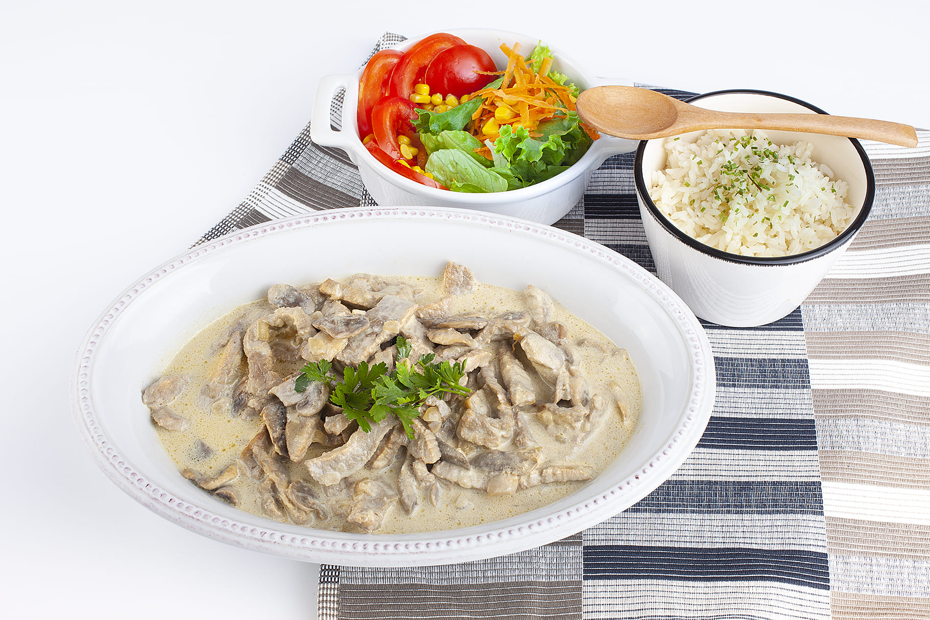 Este prato, de origem russa, popularizou-se em muitos países europeus e norte-americanos, com algumas variações da receita original. É composto por pedaços de carne cortada em tiras ou em cubos, servida num molho de creme de leite ou natas.