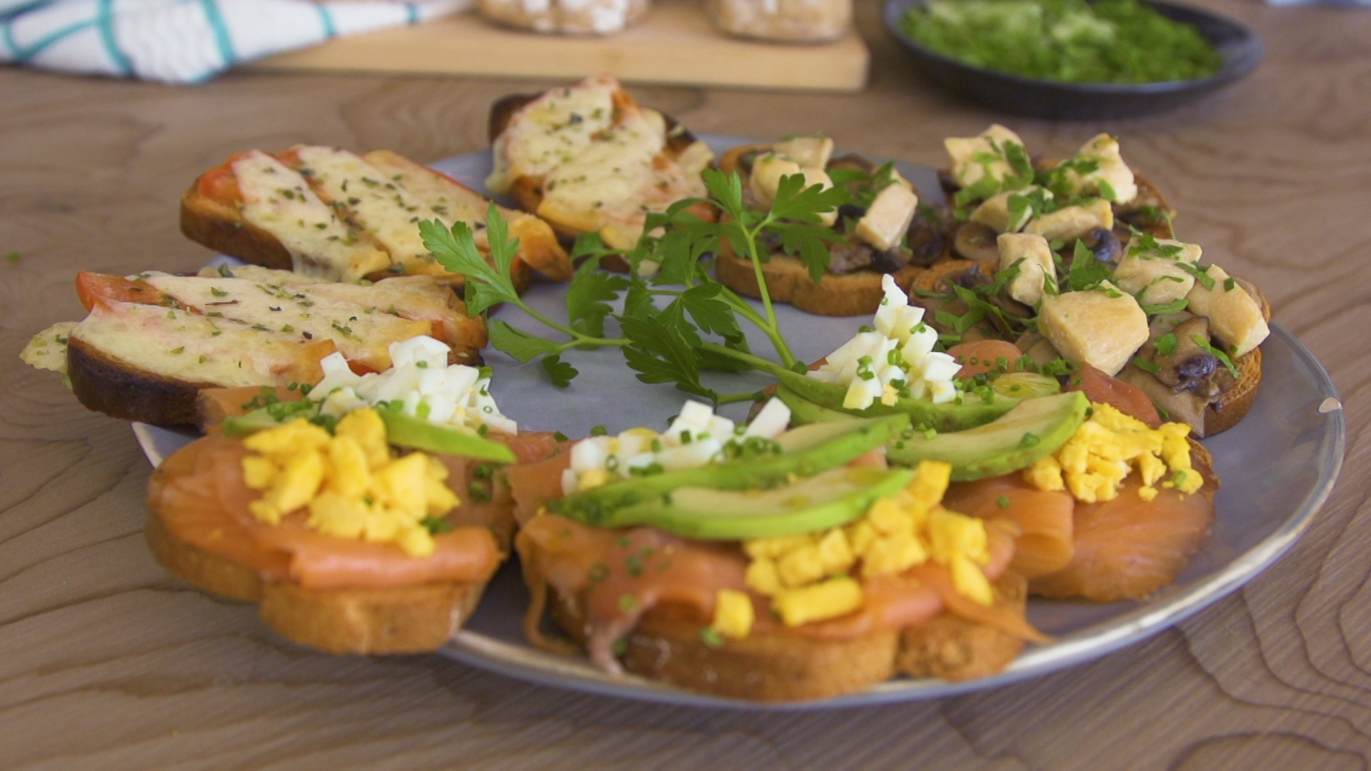 Com esta receita poderá preparar 3 variedades de tostas para entradas ou para petiscar num fim de tarde.
